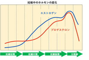 妊娠すると、母体を守り、妊娠を支えるために、エストロゲンとプロゲステロンの分泌量は出産に向けてピークに上昇します。
